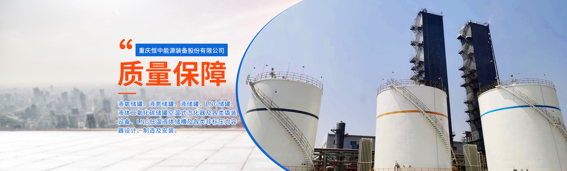重慶恒中能源裝備股份有限公司創(chuàng)建于2002年初,是中國(guó)化工裝備協(xié)會(huì)會(huì)員、中國(guó)機(jī)械工程學(xué)會(huì)壓力容器分會(huì)會(huì)員、重慶市焊接協(xié)會(huì)理事單位。公司主要從事一、二類(lèi)壓力容器設(shè)計(jì)生產(chǎn)、安裝及壓力管道安裝;液氧、液氮、液氬、二氧化碳、LNG低溫液體儲(chǔ)槽及各類(lèi)非標(biāo)壓力容器的設(shè)計(jì)、制造;LNG加氣站、LNG氣化站、LNG液化工廠解決方案及成套設(shè)備;撬裝式調(diào)壓設(shè)備、汽化器及各類(lèi)成套撬裝設(shè)備;大型平底儲(chǔ)槽現(xiàn)場(chǎng)制作及安裝。